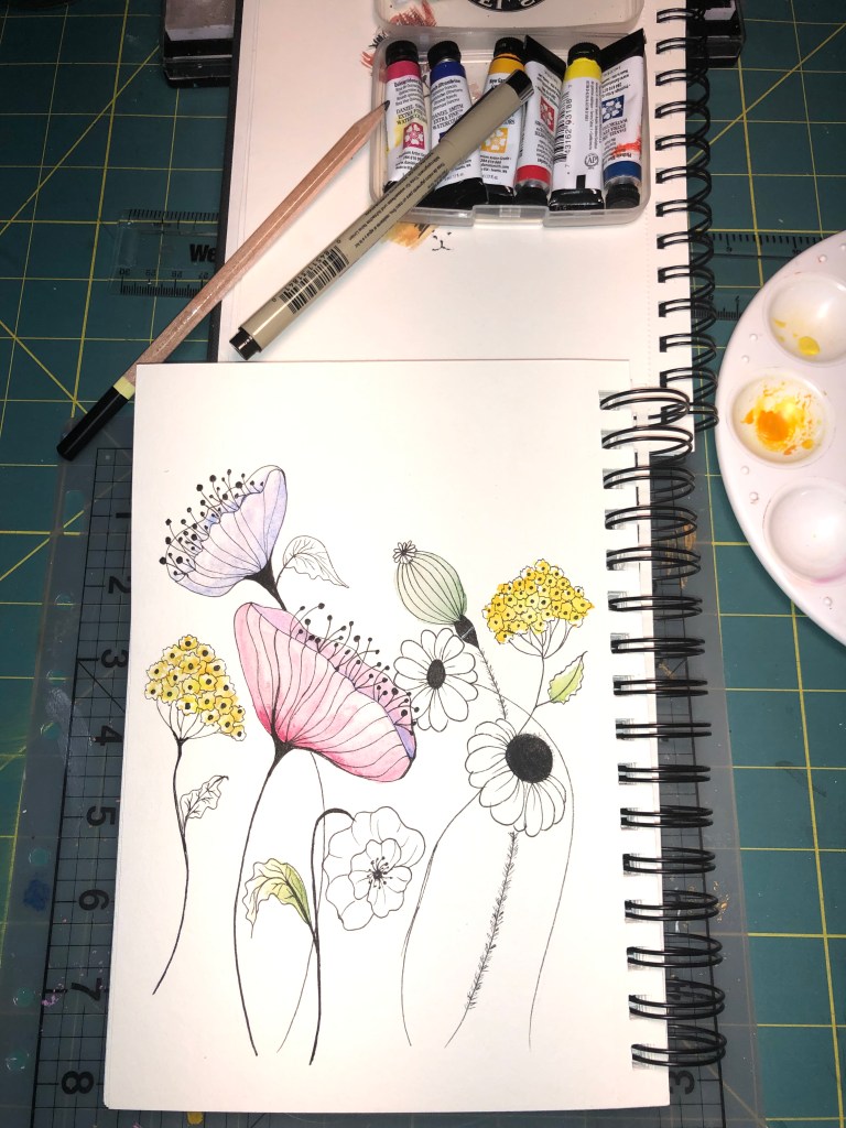 I know! It has been quite a while since I posted anything. I have a litany of excuses. But mostly I just got “hung up.” On what, you might ask? Well, whatever it is, I am moving on and now getting back into my studio, taking it slowly with a bit of doodling.