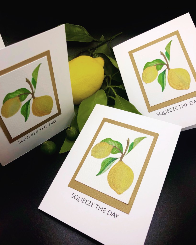 While trying to analyze what’s going on, I realized that I was losing an appreciation for what IS. So instead of questioning whether to organize my studio or to embrace the mess or whether to fret about anything (and believe me I can be a master at that), I decided to pick up my brush and just practice my art without any goals except “to appreciate.” Lemons are an easy start and I was pleasantly surprised by the outcome for a new greeting card and a reminder to enjoy and appreciate the moment. May your summer be filled with zest and that you squeeze the best out of each day and spike that lemonade.