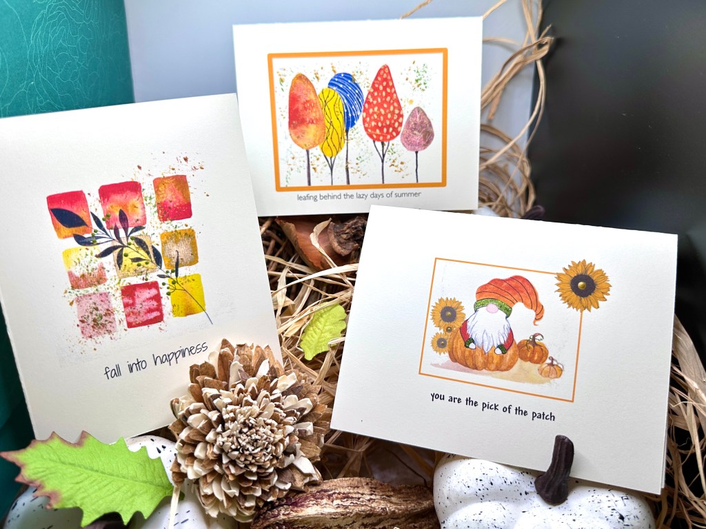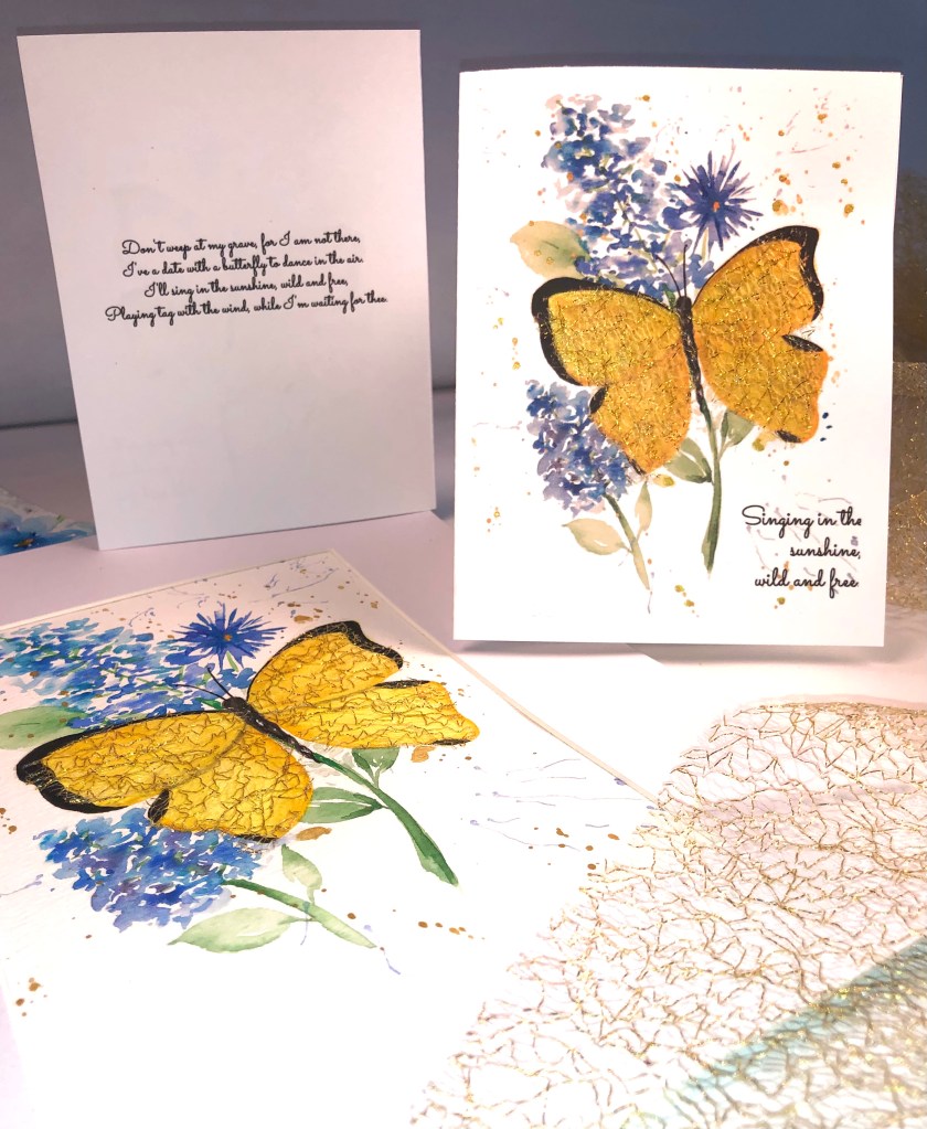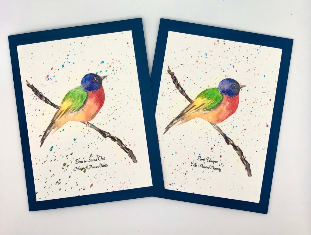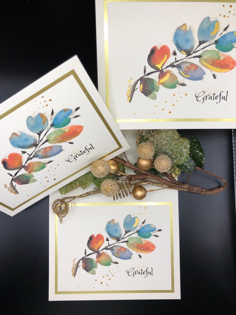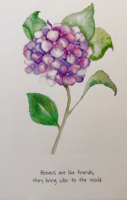 These popular cards can be used to send a note of thanks, birthday wishes, friendship and encouragement. The paper used and the level of embellishment varies. Some cards are recreated and embellished with its own watercolor image layered on special paper.