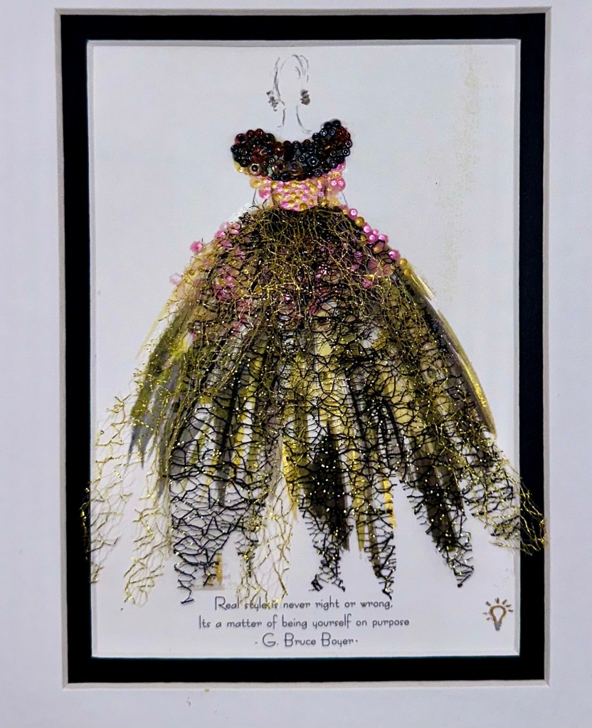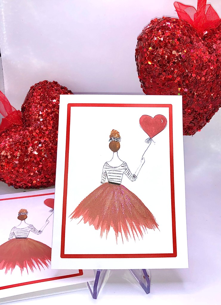 This series was born out of conversations with women who have inspired me and my work. The Red Ballgown (In a world of trends, our friendship never goes out of style.) and the The Beaded Ballgown (…be yourself on purpose. ) and The Green Goddess (Dear Santa, define naughty) are now available as cards. Recipients of these cards often have them matted and framed.